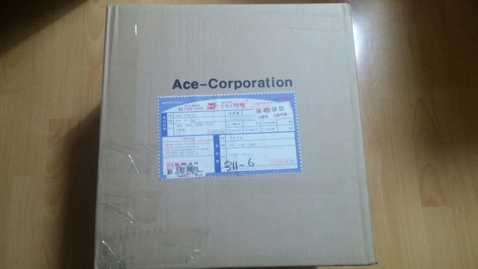 박스에 에이스코퍼레이션이라는 박스가 도착한 사진입니다