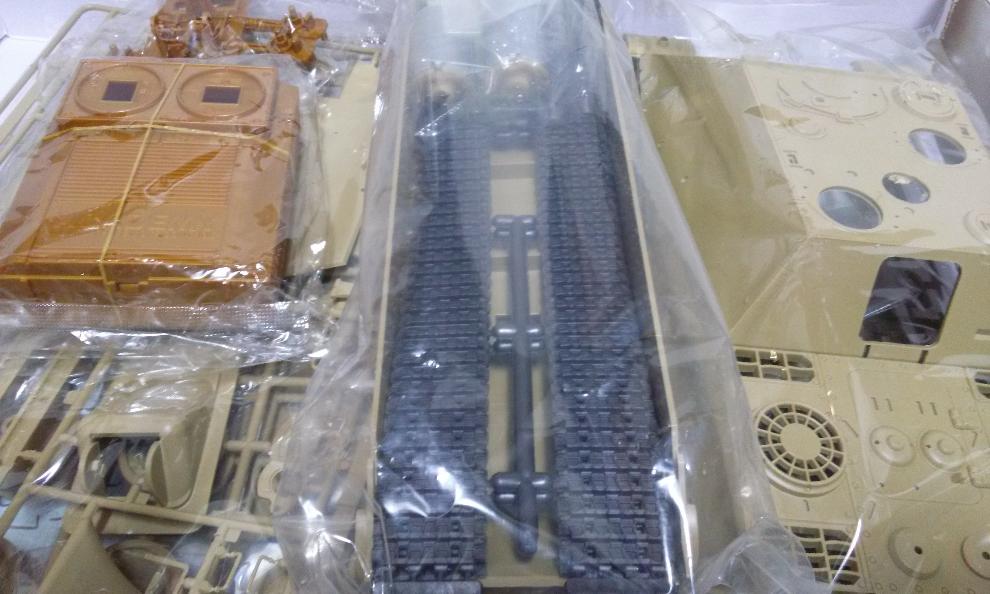 흥미로운 부분이 있어서 촬영을 해 보았습니다. 보통 궤도는 1대분만 동봉되어 있는데, 위 전차는 2대분이 있더군요. 해외 수출의 경우라서 그럴 수도 있겠단 생각도 들구, 아니면 실수로 여분이 들어간게 아닐까 합니다.