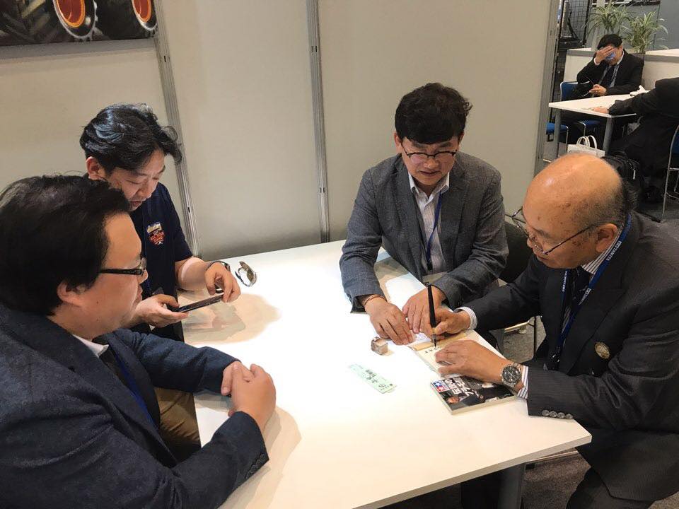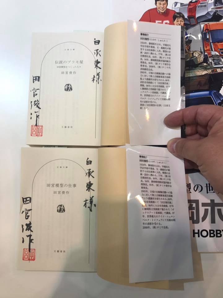 예전에 근무하고 있던 로봇회사와 한국타미야와 파트너쉽관계였던 터라 한국타미야 사장님(사진의 오른쪽 두번째)께서 자리를 만들어주셨었지요. 너무너무 설레이는 순간이었습니다. 한국에서 일부러 해외주문을 해서 타미야 회장님의 책을 두권 사가지고 갔었는데, 직접 싸인(붓필로 ^^)을 해주셨습니다. 싸인하신 후에는 마치 낙관처럼 생긴 도장을 직접 찍어주시더군요 ^^