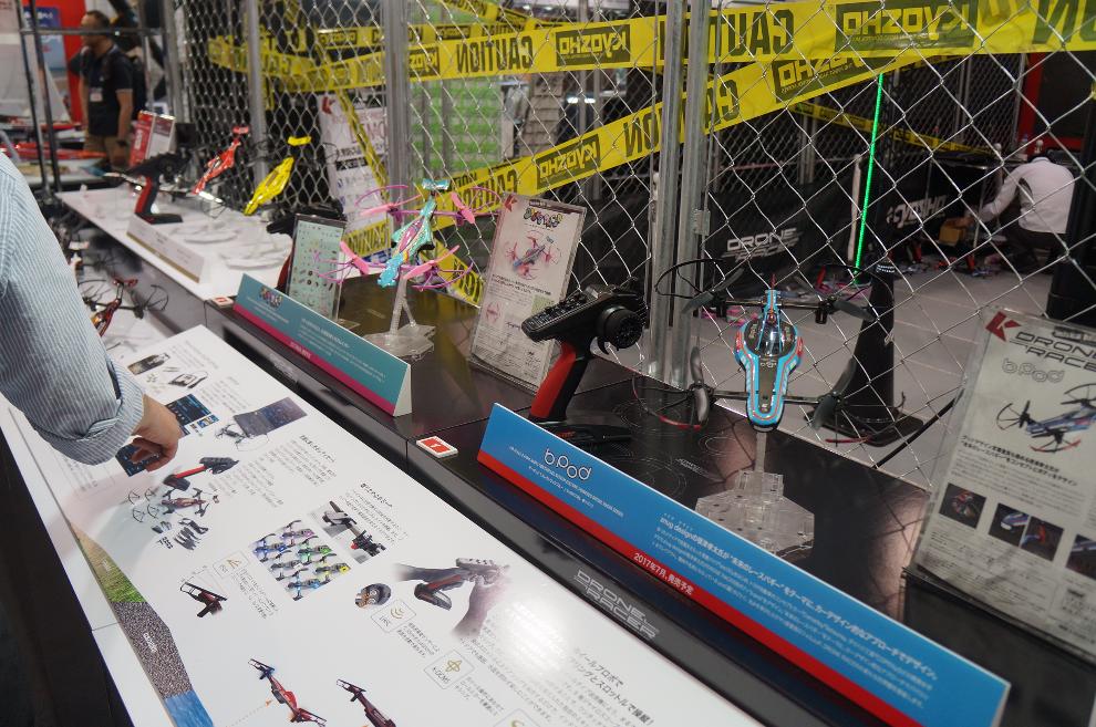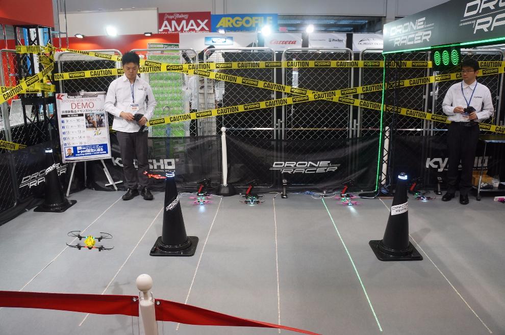 쿄쇼의 드론 레이서 시연.