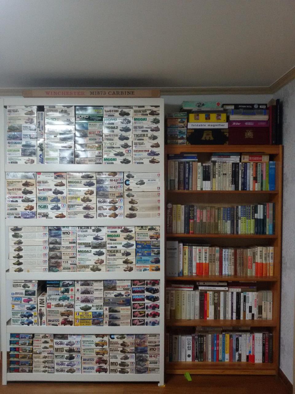 어찌보면 그 시절 사진상 장식장 크기만큼 모형들이 오른쪽 책장에 꽂혀있는 책보다 더 좋았습니다.