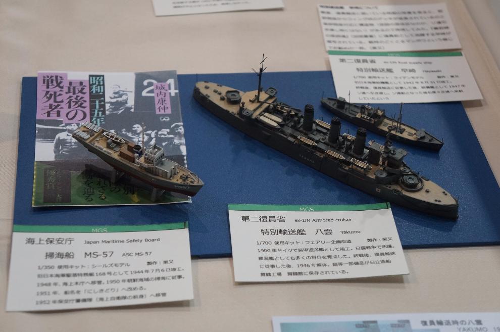 오른쪽의 둘은 제2복원성 소속의 수송선인데...앞쪽에 있는 야쿠모라는 배의 이력이 재미있습니다. 1900년에 독일에서 건조돼 일본에 팔린 배로, 러일전쟁에 참전했습니다. 그 후 2차대전때까지 현역이었다가 종전 후 무장이 철거되고 복원선으로 사용됐습니다.