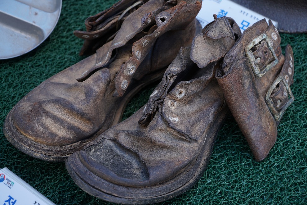 북한국 군화라고 하더군요. 아군 유품에 비해 북한국과 중공군의 유품은 상대적으로 적다고 합니다.