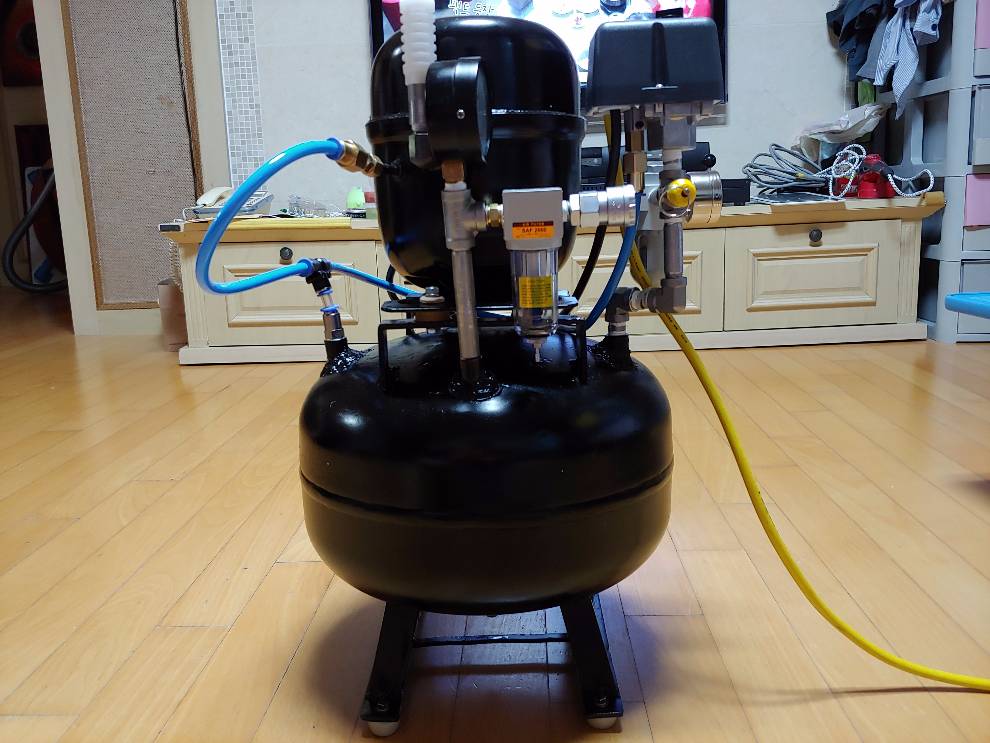 냉장고 콤프레샤와 작은 까스통으로 콤프레샤 하나 만들었습니다. 비틀벅 콤프가 의외로 소음이 있어서 야간에 작업 할려니 여간 조심스러워 지는게 아니더군요. 약 3주간 공부-구상-부품확보-제작-시행착오-다시공부-부품확보-제작-시행착오.... 무한 크리를 타며 퇴근후 시간과 회사의 쉬는 시간을 다 날리며 결국은 완성했는데요. 덕분에 이젠 돌아가는지 모를정도의 정숙성으로 편하게 작업할수 있게 됐습니다.