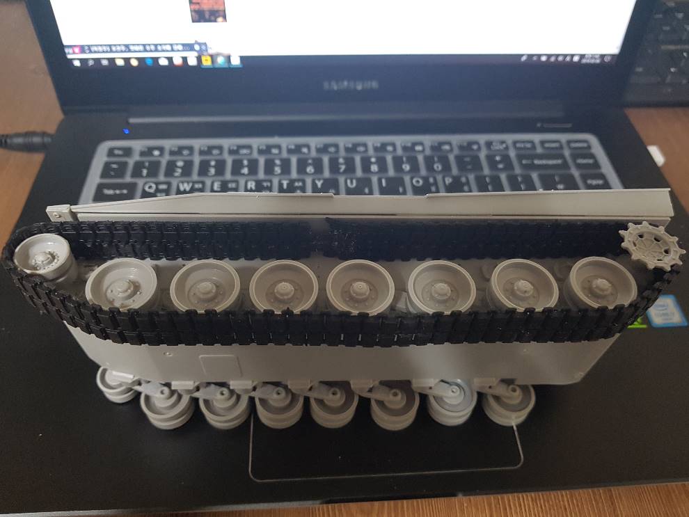 스커트 안으로 숨겨버릴까도 생각해봤는데, 트랙 장력때문에 스프로켓 감기는쪽이 움푹 들어가버리네요..