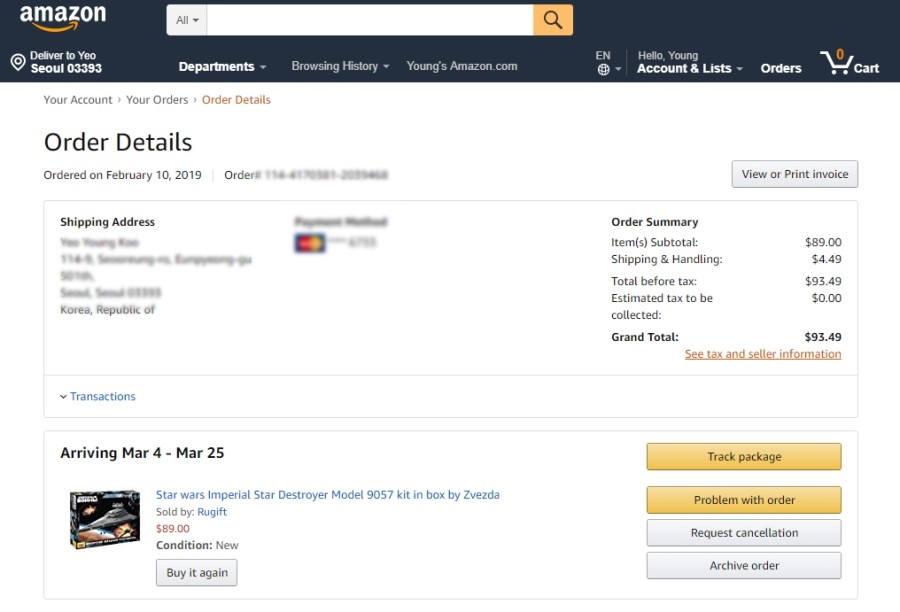 오매불망 기다리던 즈베즈다 스타디스트로이어가 국내 입고가 거의 힘들어 보여서 해외 주문을 했었는데 주문한지 약 18일만에 도착했네요..^^!