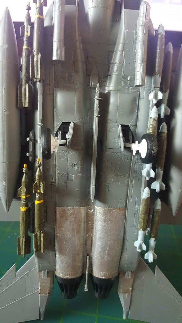 원래는 구멍을 뚫어서 끼웠다 뺐다 할 수 있게 만들려고 했는데 핀바이스로는 너무 작거나 너무 크게 뚫려서 결국 핀자르고 다듬어서 붙였습니다. GBU-38하고 같은 Mk.84를 썼는데 길이차이가 생각보다 크게 나더군요.
