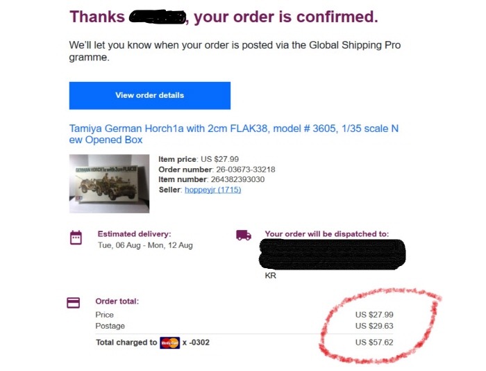 내일부터 여름휴가여서 편안히 집에서 작업 좀 하려다 책장 한 켠 94년에 구입해 아직까지 보관중인 타미야 카타로그가 눈에 띄어 정말 오랜만에 꺼내 보게 되었습니다. 찬찬히 밀리쪽 페이지로 넘어가보니 지금은 색이 바래졌지만 볼펜으로 낙서가 각 아이템마다 있는데 특히 타미야 1/35 호르히 & 대공포에는 작게 X 표시와 함께 정말 개미만한 글씨로 "용돈모으면" 이라고 써져있더군요... 언제 낙서를 한건지 정확히 기억은 안 나지만 생각해보니 지금까지 이 킷을 접해본 적이 없더군요.. 그래서 국내 쇼핑몰에서 찾아보니 역시 예상대로 단종품인지 아무튼 제품 리스트에서 조차도 없더군요... 곧바로 주로 가는 해외 쇼핑몰 몇군데 찾아봐도 역시나 없더군요... 결국 이베이까지 뒤져 다행히 미국쪽 셀러 한분이 하나 팔고 있는게 보여 냉큼 결제했습니다. 이베이에서 몇번 국내에서 구하기 힘든 레진 함선킷을 구매하긴 했지만 인젝션킷을 구매하기는 처음이네요. 언제 도착할진 모르겠지만 이렇게 구판 킷에 기대가 되는건 또 처음이네요. 비록 요즘 최신 킷에 품질으론 비할 바는 못되겠지만 유년시절부터 학창시절까지 그때 추억은 결국 지갑을 열게 만드네요. 그런데 해외배송이다 보니 킷은 27.99불인데 운임이 29불을 넘습니다 ㅜㅡ