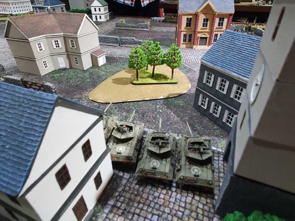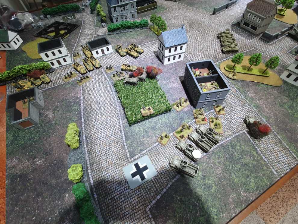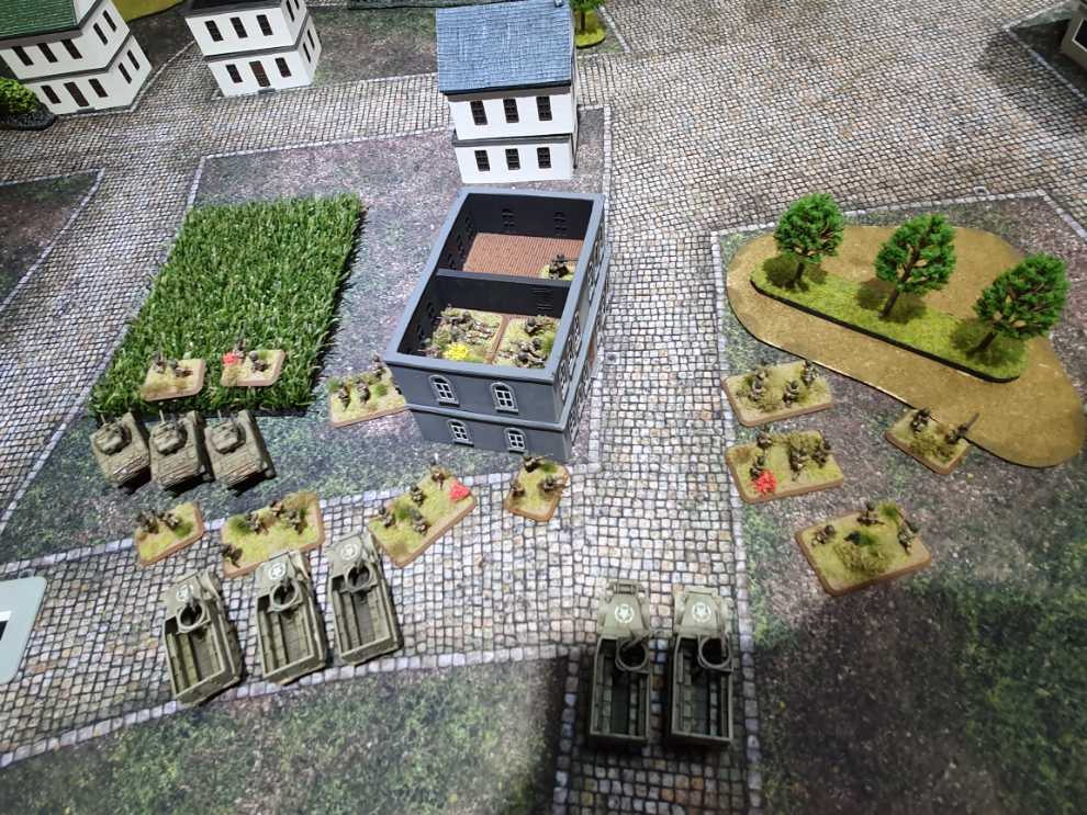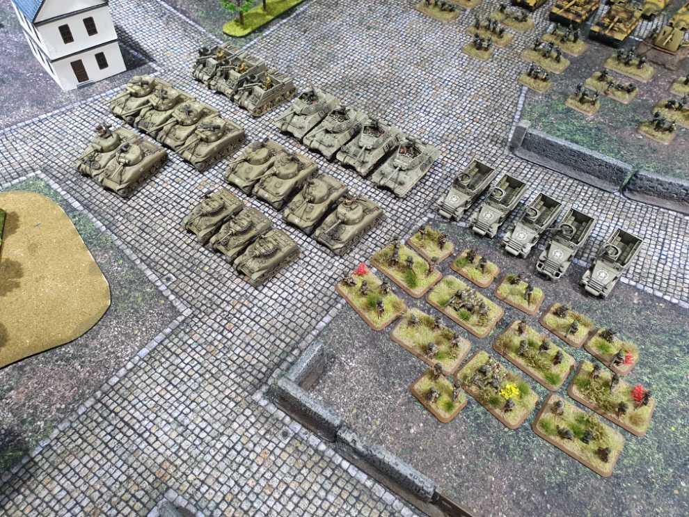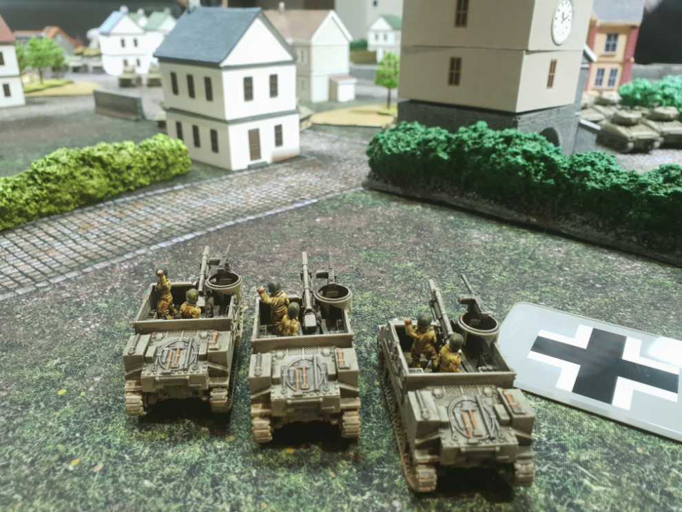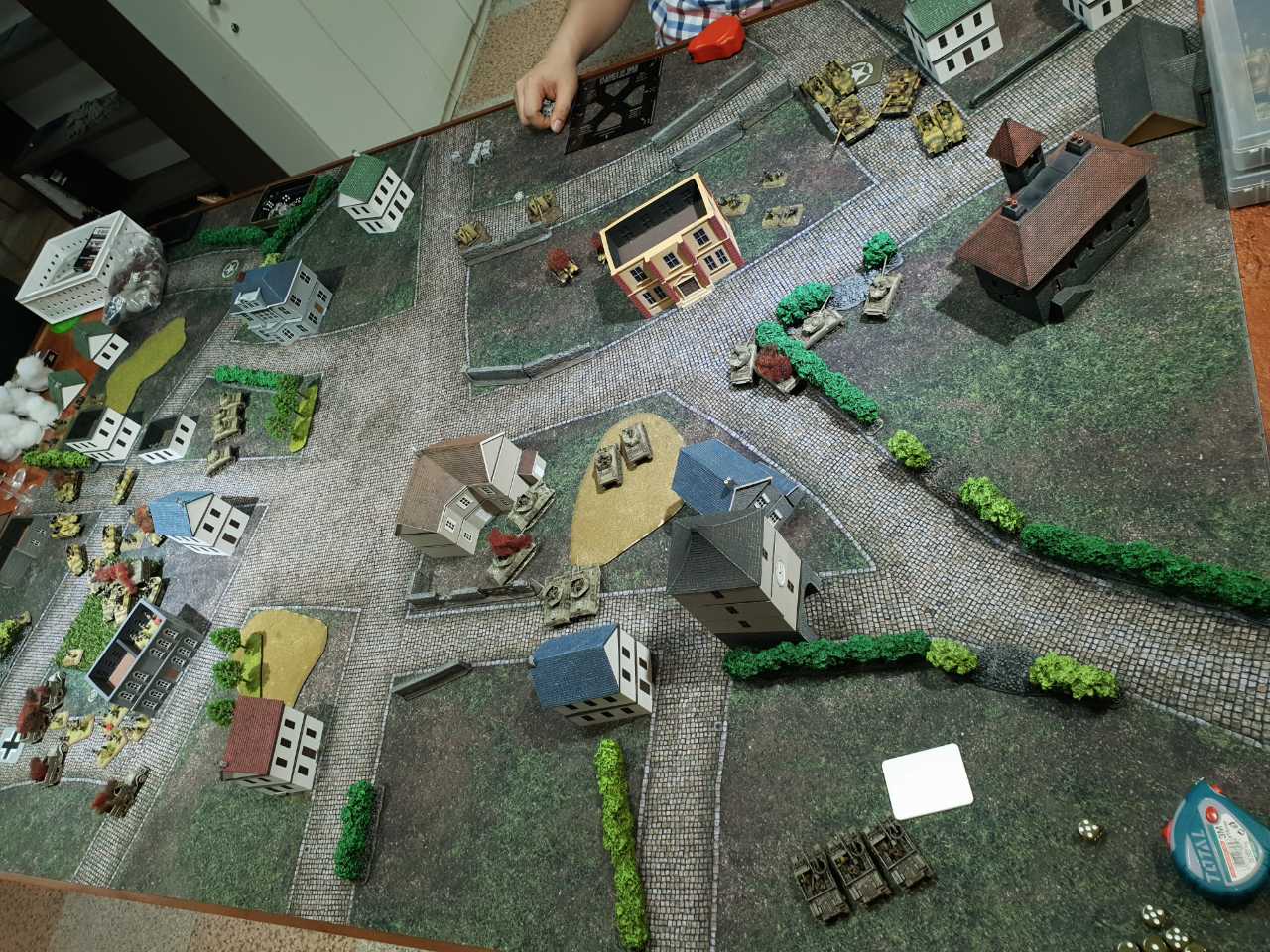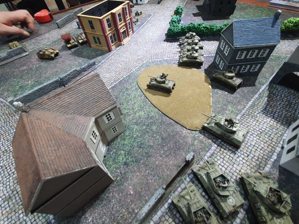 중앙의 전차전은 미군의 승리로 보입니다. STUG 소대가 한 대만을 남겨두고 모두 파괴됩니다.