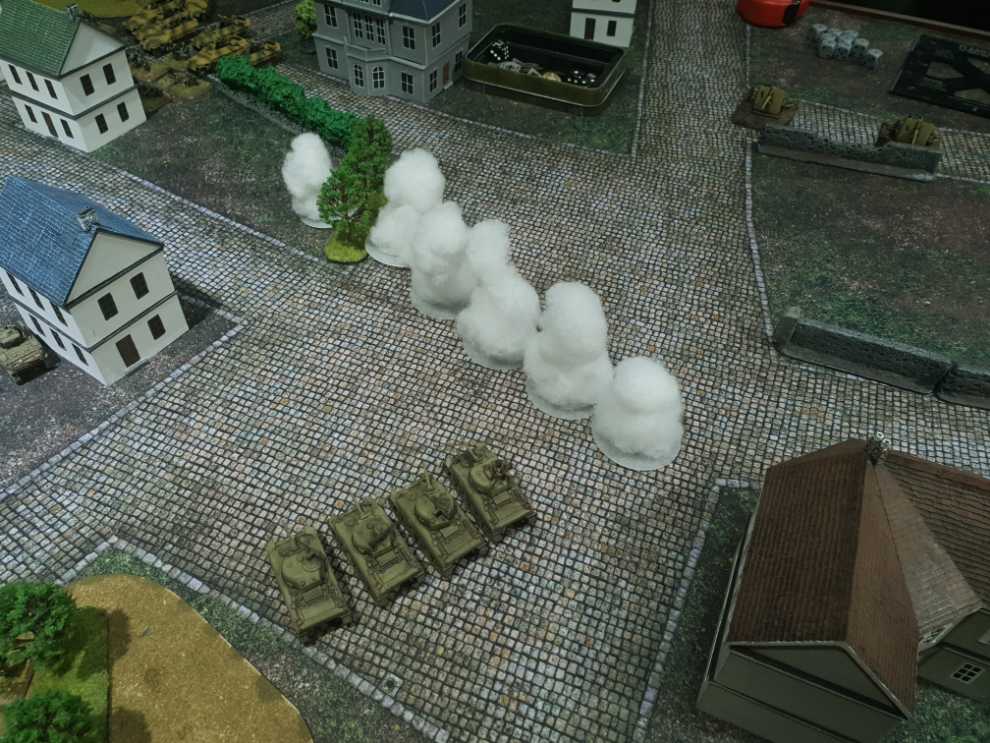 연막은 좌측 보병 소대의 소대장이 알린 곳에 정확하게 목표한 위치에 떨어지면서 중앙의 8,8cm FlaK로부터 시야를 가려줍니다.