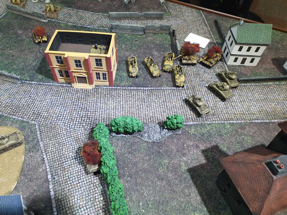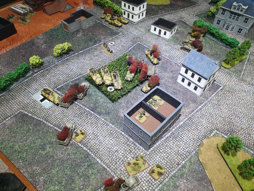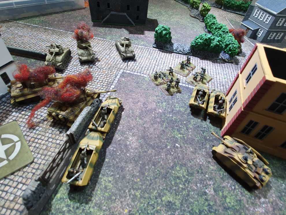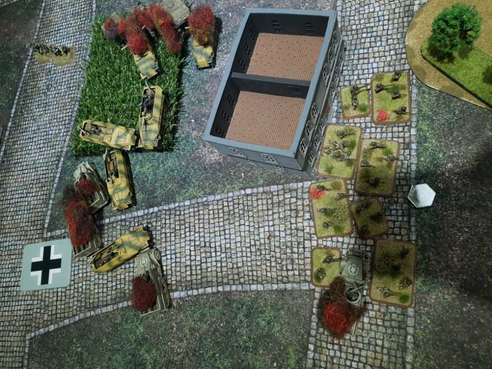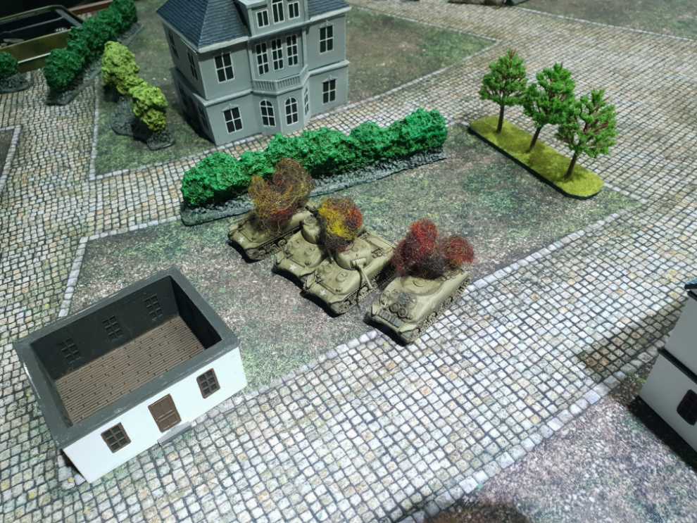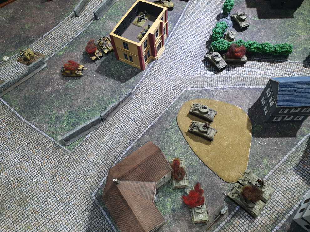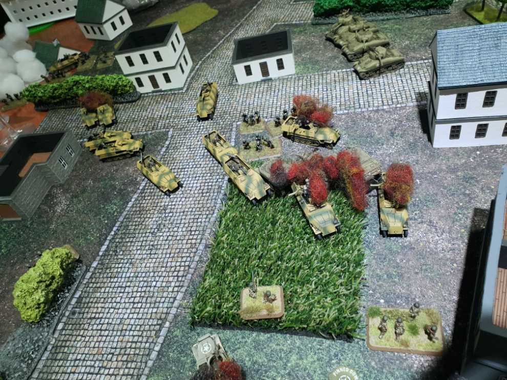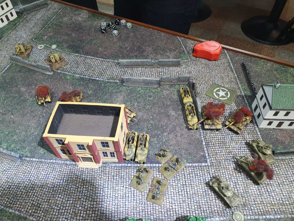 우측에서도 어떻게든 기회를 잡고자 76mm 셔먼 소대가 질주를 하고, 보병 소대가 다시 전열을 가다듬고 반격을 시도합니다.