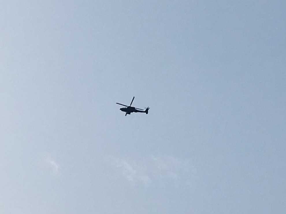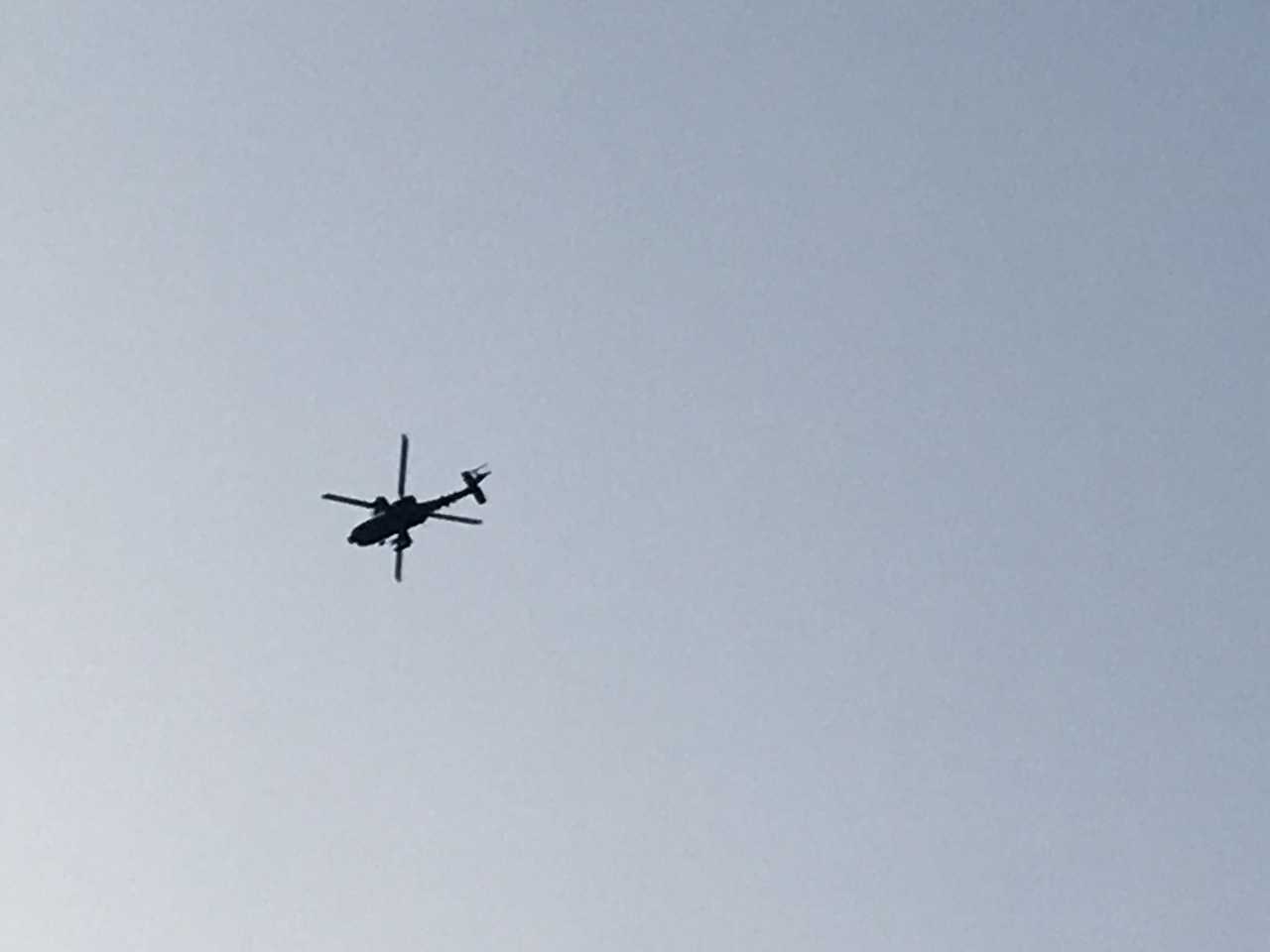 아파치 편대가 머리 위를 날아가고 있더군요.
