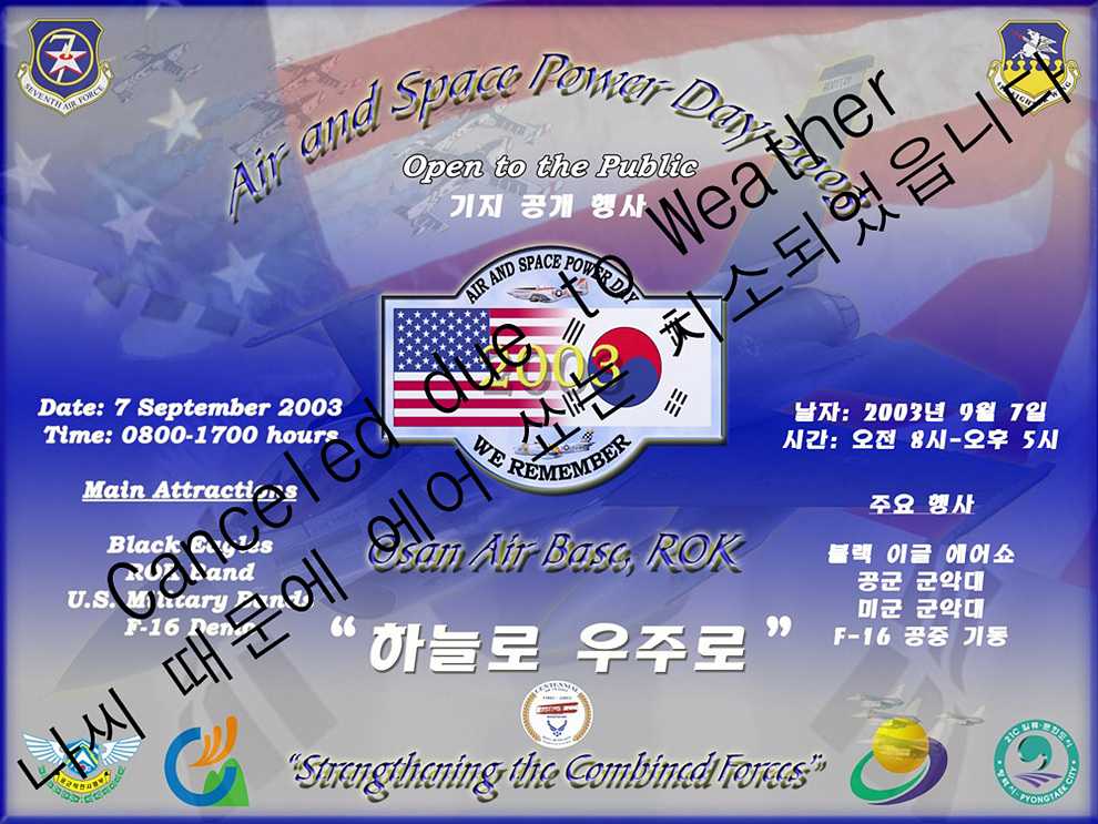 마지막으로... 아래는 비 쫄딱 맞으며 부대 앞까지 갔었는데 뒤늦게 홈페이지에 올라오던 2003년 에어쑈 치소 공지입니다.