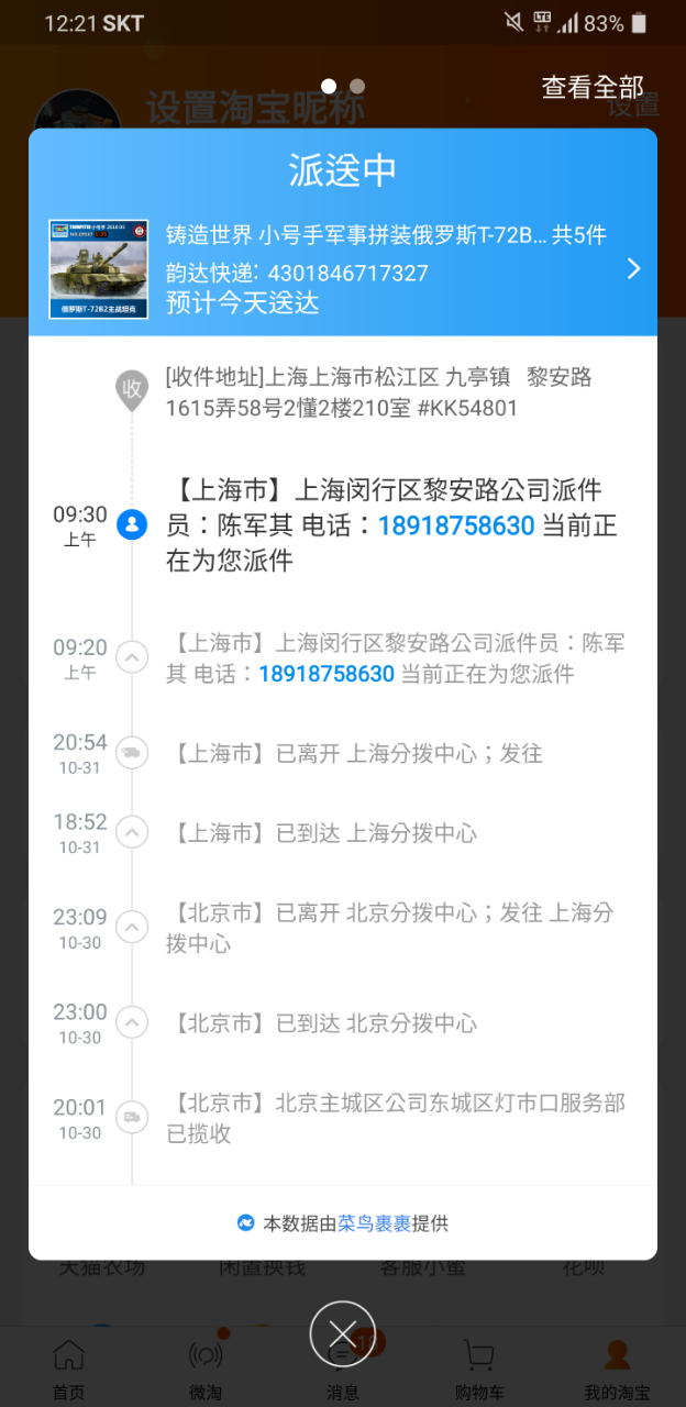 근데 아뿔싸! 초 여름에 접속하고 10 월말에 다시 접속하니 그동안 중국 배대지 주소가 옮겨 졌더군요. 타오바오의 고객등록 주소는 2년이상 그대로인데...타오바오 내의 택배 추적으로는 벌써 베이징을 벗어나 있지. 주소지는 다른 곳이지. 발등에 불이 떨어져 있습니다.