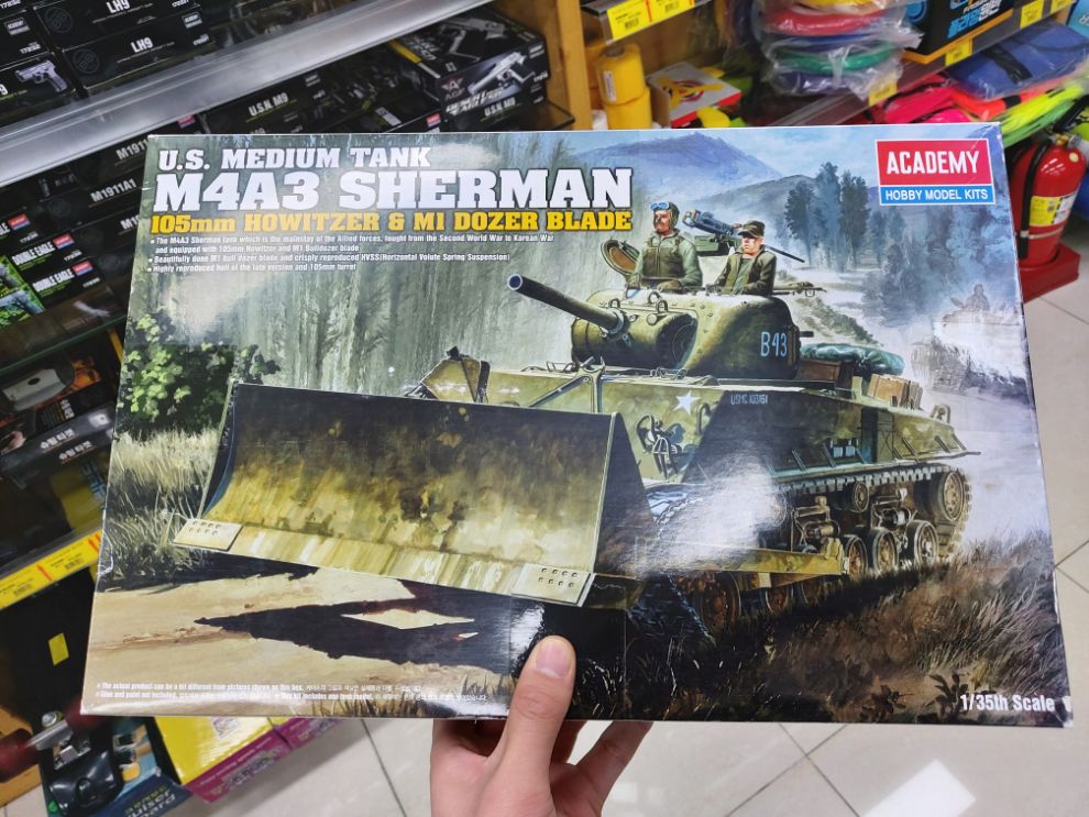 제가 오늘 대전 삼화문구몰에 갔다가 아카데미제 M4A3(불도저날 장착형)을 보게 되었습니다.