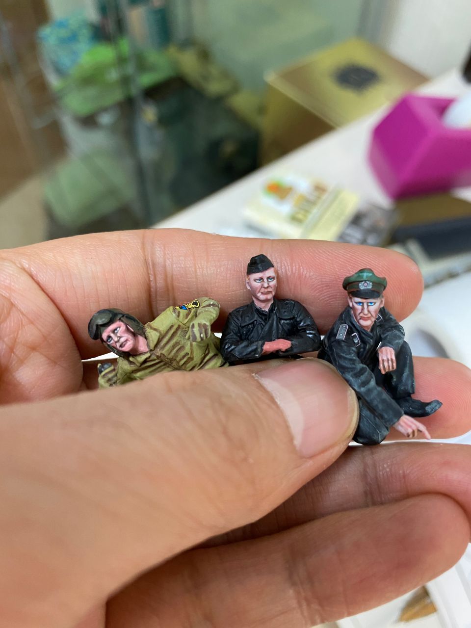오른쪽놈은 미니어쳐사 제품인데 비싸게 주고 산놈이지만 얼굴을 칠할때 험프롤에나멜로 칠해버려서 도저히 지울자신은 없고 옷칠할때 공들여 칠한 제품이라 다시 리폼을 해야하는데 만지기 싫어지더군요