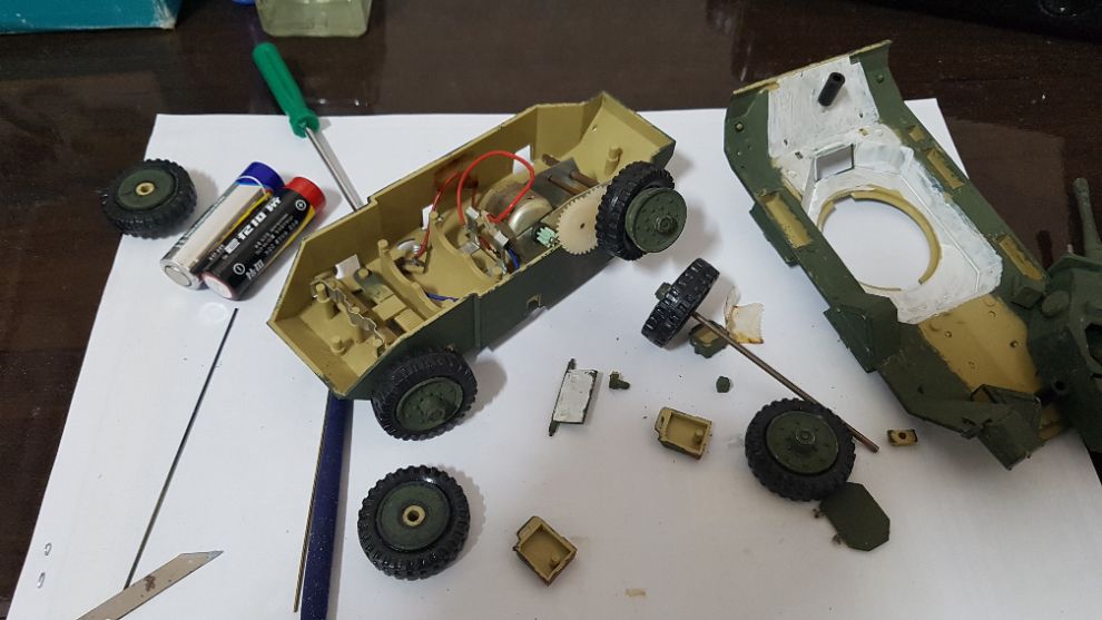 디테일 파츠가 망실되었고 바퀴부분이 파손되었으며 모터가 구동이 되지 않는등