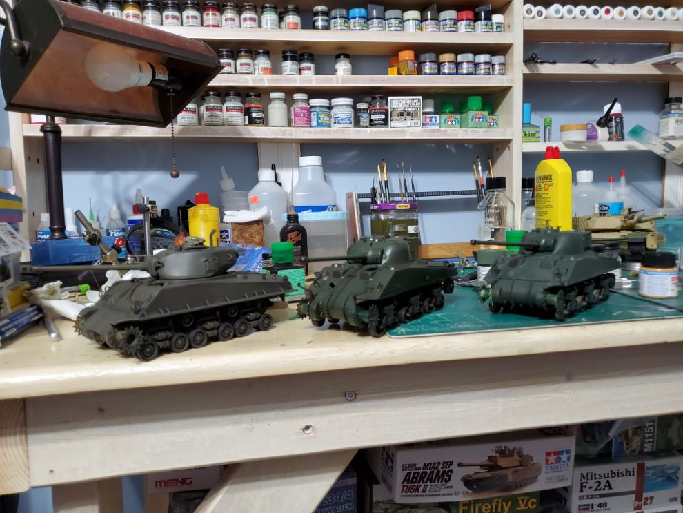 위에 것들이 마무리 되면 다음은 셔먼 시리즈입니다. 왼쪽으로부터 타미야, 타스카, 드래곤 순입니다.
