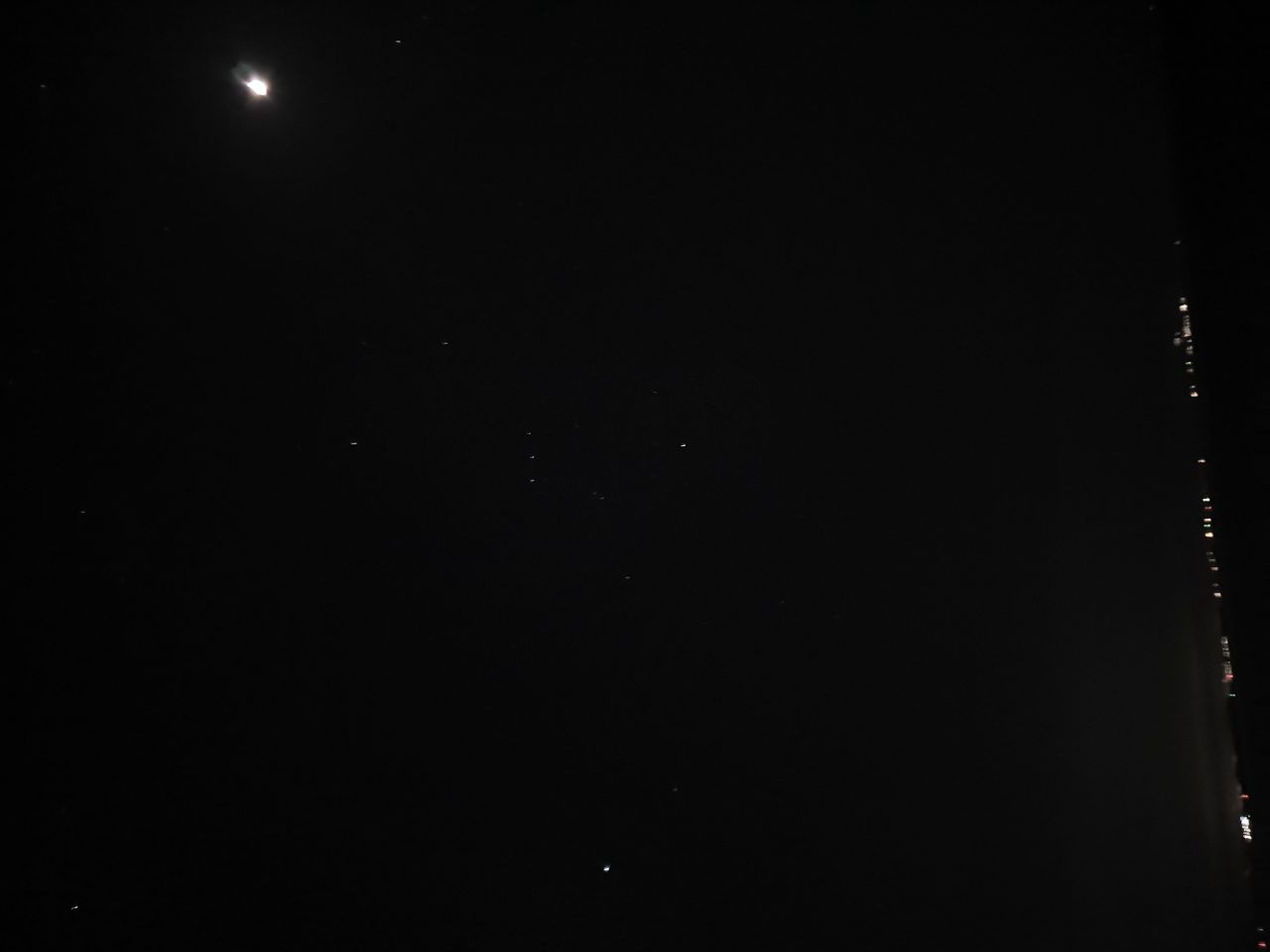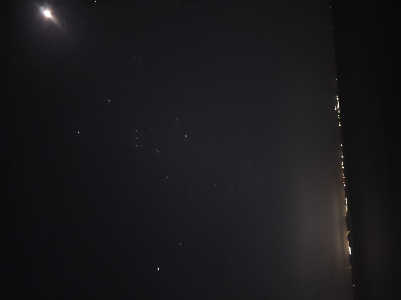 (사진이 옆으로 누웠네요 수평선이 오른쪽으로 보이고 시리우스는 사진 아래쪽에 있는 밝은 별입니다. 위쪽에 크고 밝은건 달입니다)