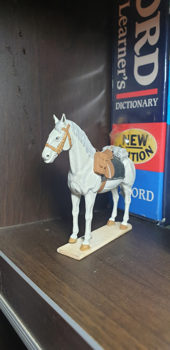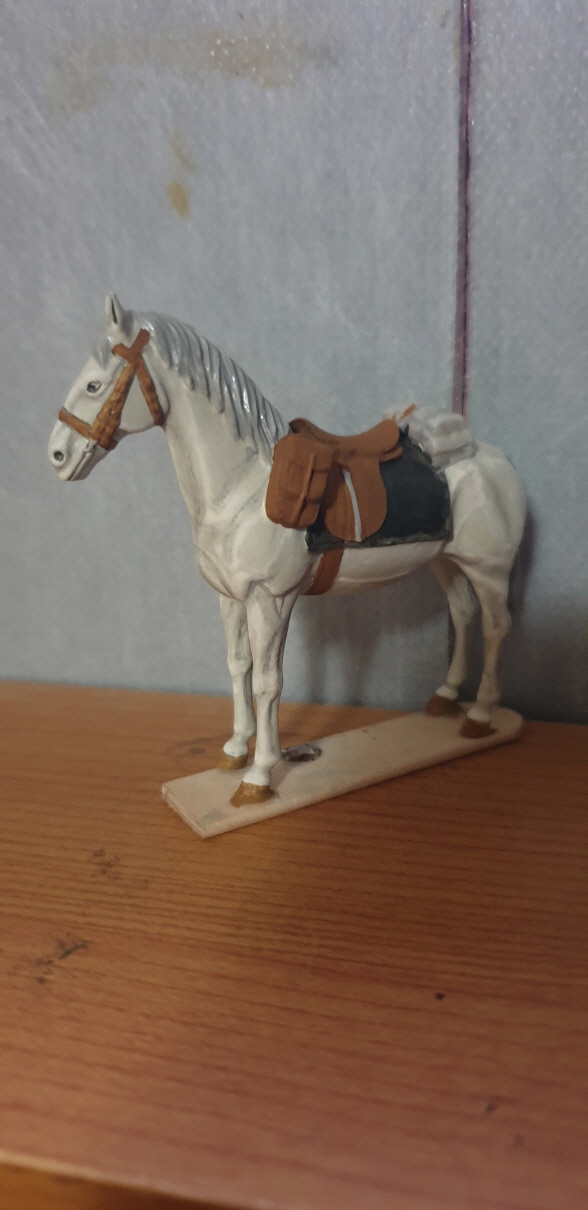 이전에 글을 올렸던 것처럼 드래곤의 플로리언 가이어 키트에서 1마리는 브라운색 말로 해봤으니, 다른 1마리는 백마 도색을 해보자는 생각이 들어서 한번 시도를 해봤습니다.(구입한지 10~15년이 넘은 물건인데, 이제야 조립과 도색을 함....)