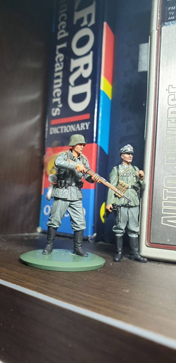 오른쪽에 서있는 타미야 인형의 바지가 점묘법을 사용한 것인데 결과를 놓고 보면 왼쪽 인형이 더 만족스러운 결과가 나온 것 같습니다.