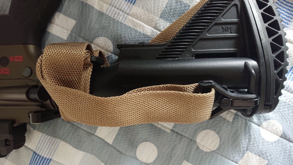 긴 쪽은 바디쪽에 연결 한 후, 어깨에 걸어서 권총손잡이가 허리춤에 오게 길이를 조종했는데,