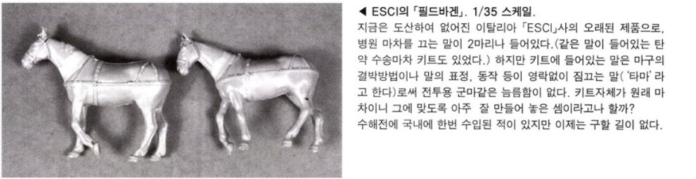 그리고 군마 도색과 그에 맞는 인형 때문에 여러 자료와 사진들을 찾아보다가 당연히 마차에도 관심을 갖게 되었고, 과거 ESCI의 제품인 독일군의 물자 수송용과 환자수송용 마차를 현재도 구입이 가능하다는 것을 알게 되었습니다.