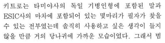 예전에 취미가의 말 관련 특집 기사(96년판)를 보고 ‘예전에는 이런 게 있었다.’정도로 잊고 있었는데 아직도 구할 수 있다는 걸 알게 되니 또다시 지름신이 제 머리로 강림을 했습니다. 하지만 머릿속에서 디테일과 조립성과 같은 품질들을 과연 내가 감당할 수 있을까라는 생각이 들면서 지름신이 소멸하더군요.