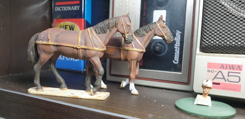 ESCI의 환자 수송용 마차에 들어있는 말 두마리를 도색 중인데, 얼굴 정면을 보면 노새나 당나귀가 떠오르지만 옆에서 보면 짐을 끄는 사역용 말의 모습이 잘 표현이 된 것 같아서 그럭저럭 만족을 하고 있습니다.(유일하게 만족스럽지 않은 것 하나는 아직도 한참 모자란 제 도색실력뿐...)