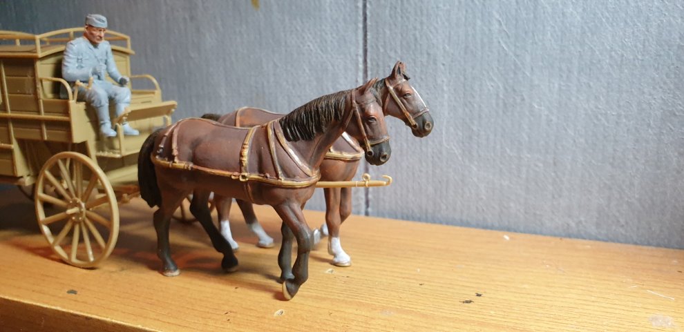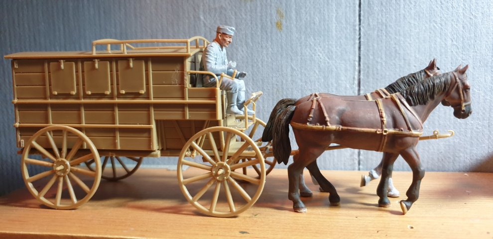 환자 수송용 마차를 가조립 하고 미니아트의 Road to rear에 들어 있는 인형을 앉혀 봤는데, 다리가 조금 짧은 것 같아서 다리를 늘려주거나 아니면 발 밑에 모래주머니 혹은 나무박스 같은 걸 놔서 길이를 맞춰줘야 할 것 같습니다.