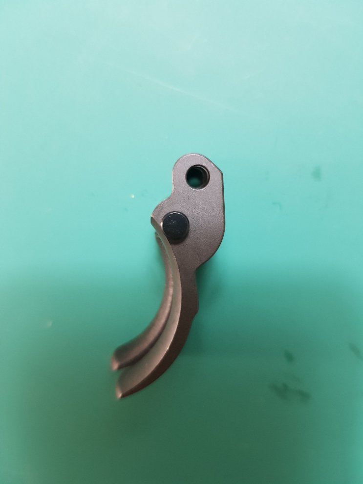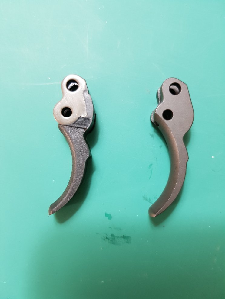 위 방아쇠가 폴리머로 된 방아쇠이고 밑이 메탈로 된 방아쇠입니다.