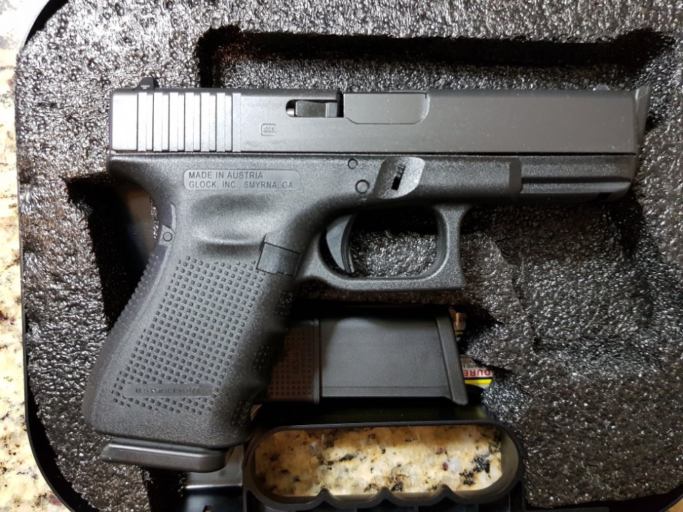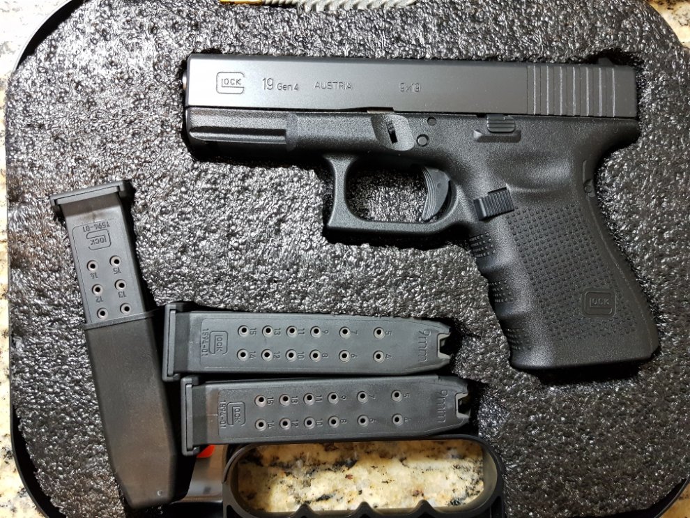 이번에 소개해 드릴 총은 너무나도 잘 알려진 Glock 19입니다. 현재 5세대 (Gen 5) 모델까지 출시됐는데 저는 건샵에서 직접 4세대하고 5세대를 비교해보고 4세대모델을 선택했습니다. 가격은 $445입니다. 9mm 15발짜리 탄창이 세개 딸려옵니다.