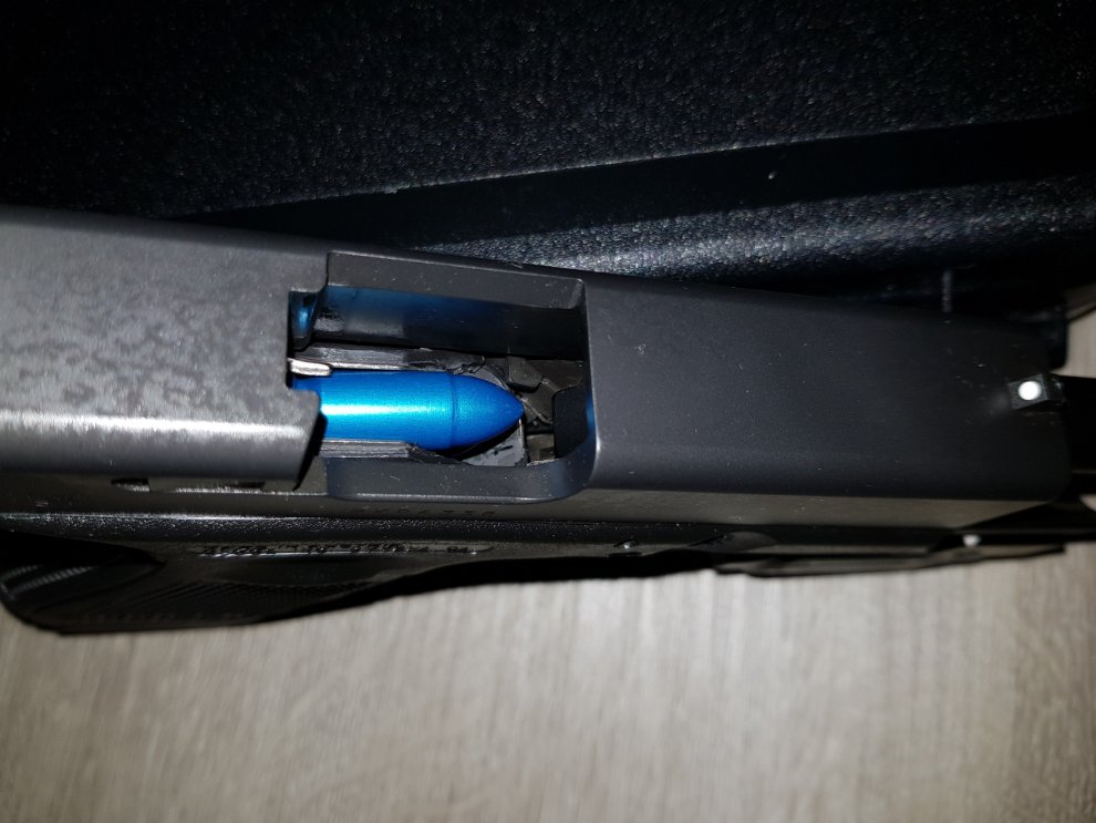 슬라이드없이 탄창에 탄이 있는 모습입니다.