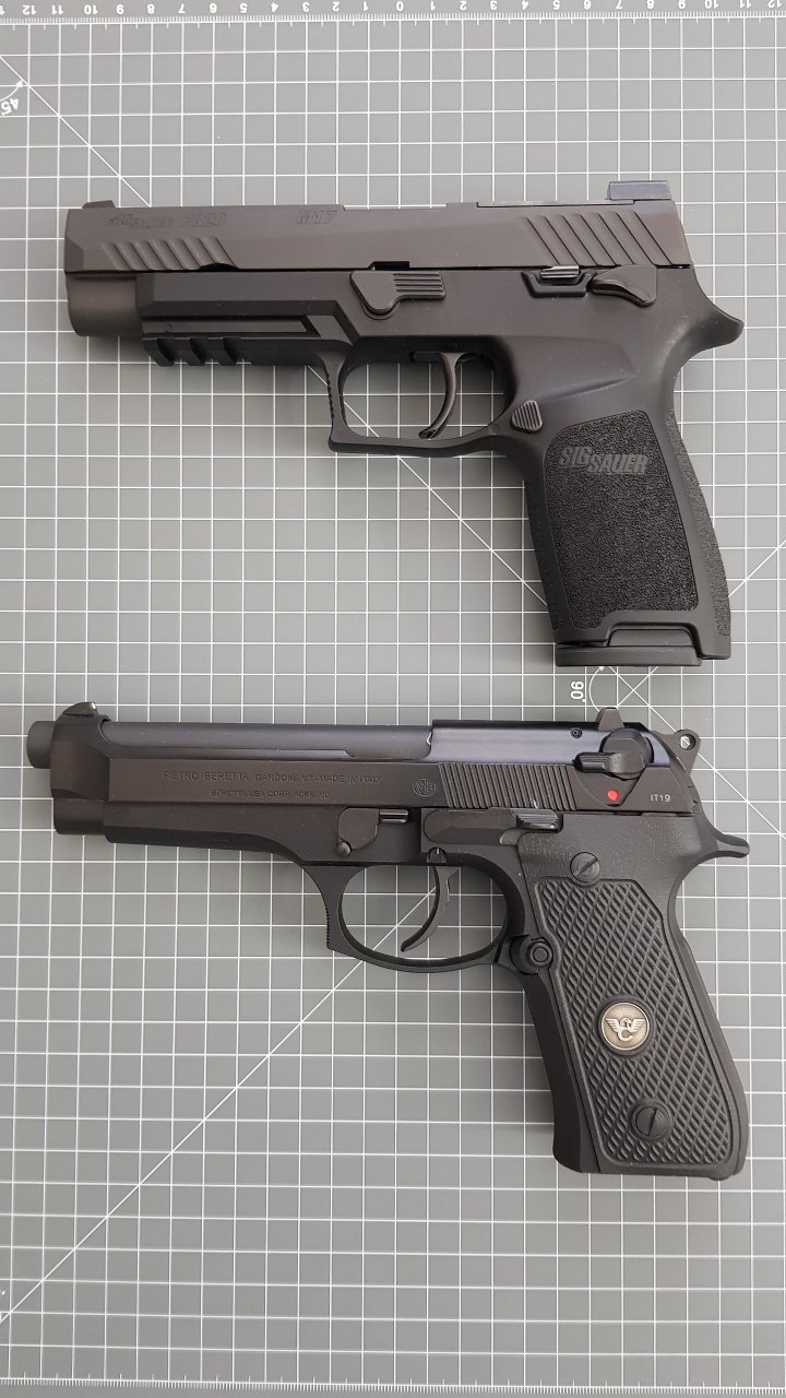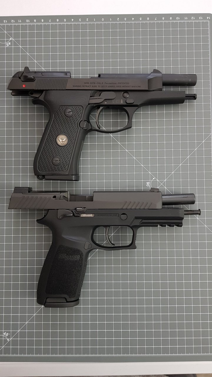 M17이 조금 둔하게 생겨 언뜻보면 Beretta보다 커보이는데 막상 대보면 Beretta가 총열때문에 약간 더 깁니다. 무게는 M17이 893그램에 Beretta가 944그램으로 M17이 폴리머바디임에도 풀사이즈라 Beretta하고 별 차이가 안납니다.
