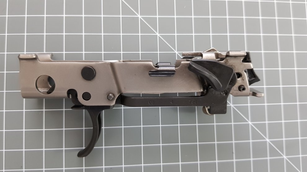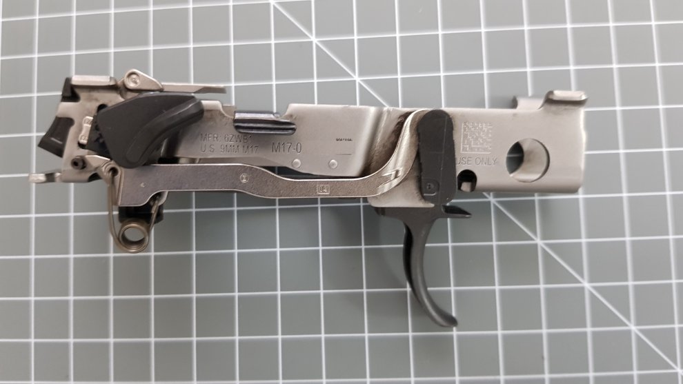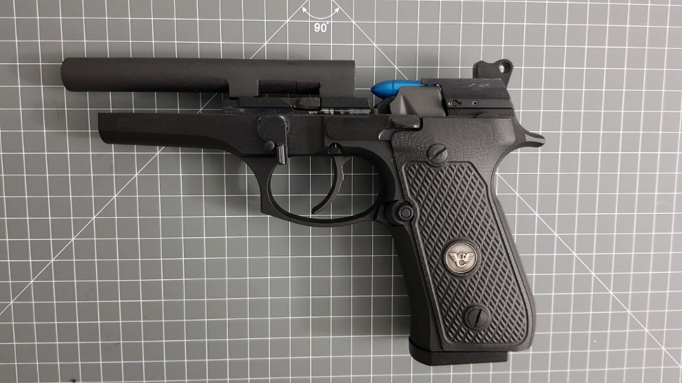 사용자가 할수 있는 완전분해 모습입니다. 사진속 밑에 있는 방아쇠그룹만이 법적으로 총기입니다. 거기에 총일련번호가 새겨져있고요. 그러기에 방아쇠그룹을 제외한 다른 모든 부품은 온라인으로 구입시 별다른 신고절차없이 바로 집으로 택배를 통해 받을수 있습니다. 몸체는 몇가지색으로 다양한 사이즈가 별도 판매되고 있습니다.