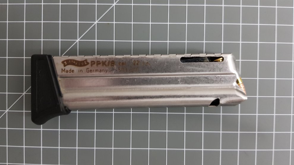 22구경이라 탄창도 보통의 권총 탄창하고는 생김새가 사뭇 다릅니다.