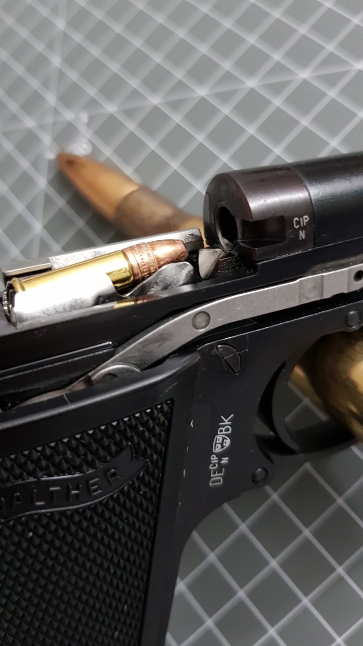 영화에 나오는 .380 ACP 구경의 PPK (혹은 .32 ACP일수도 있습니다) 하고는 구경하고 장탄수가 다른데 기본적으로는 동일한 권총입니다.