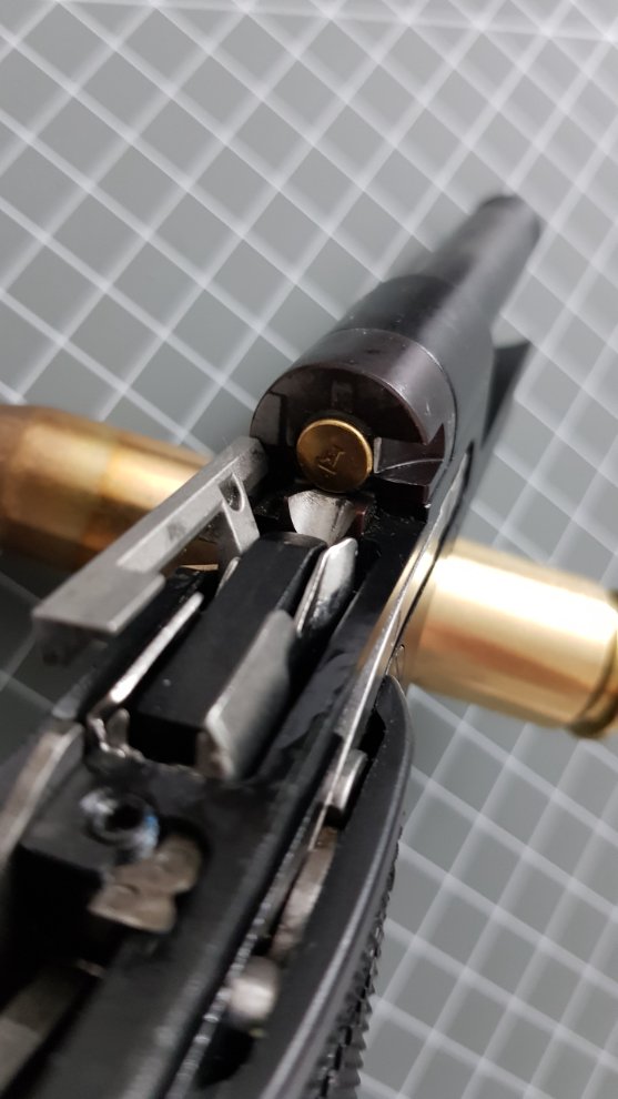실탄이 약실에 장전된 모습입니다.
