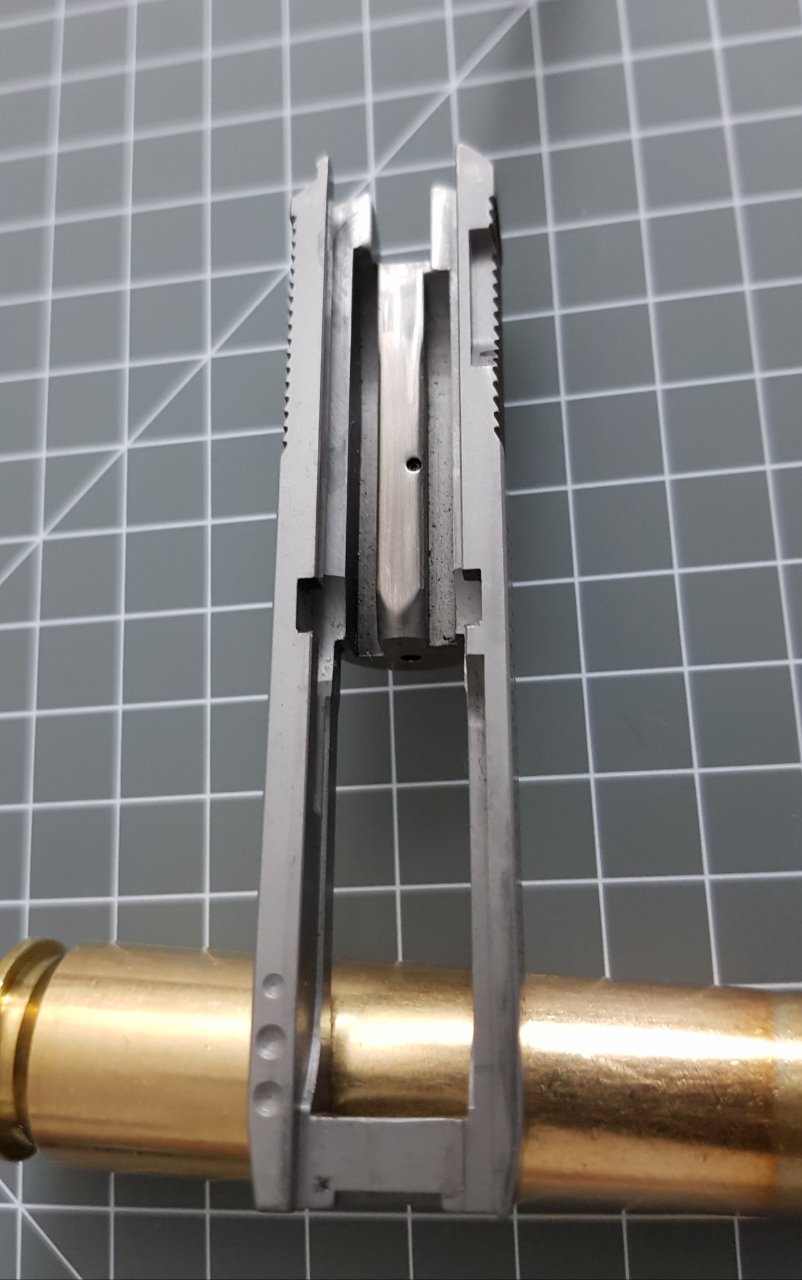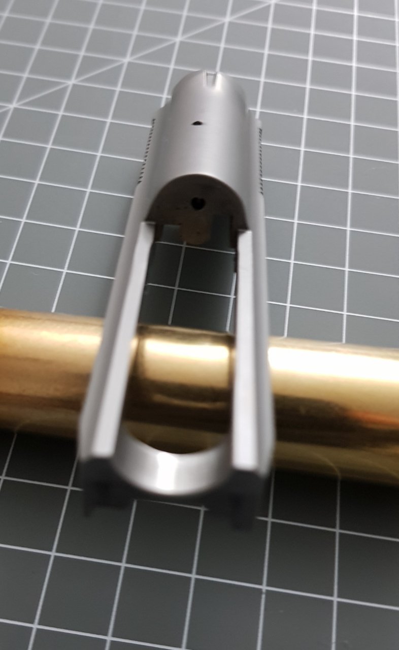 슬라이드입니다. 달랑 격발핀이 숨어있는 구멍만 있습니다.