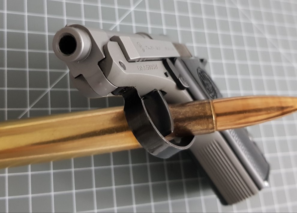 해머를 제끼면서 방아쇠도 몸체쪽으로 많이 꺾였습니다.