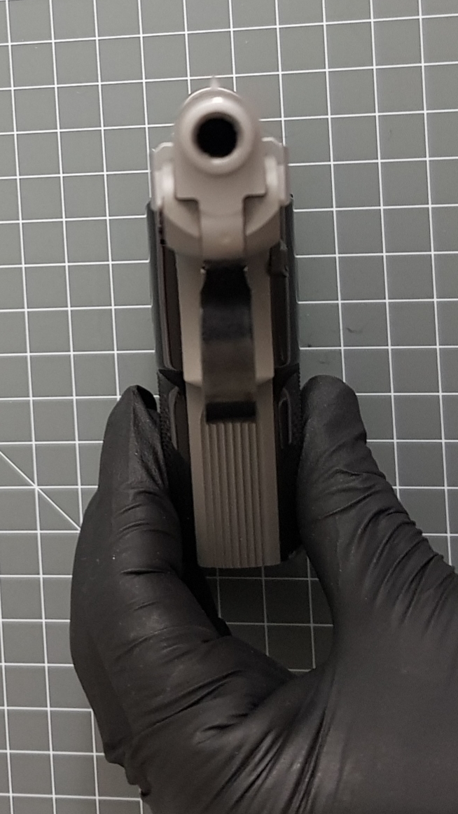가늠쇠, 가늠자가 작아서 겨누기가 쉽지는 않지만 근접거리 호신용인 이 총으로 먼거리를 겨누고 쏠 일은 없기에 큰 문제는 되지 않습니다.