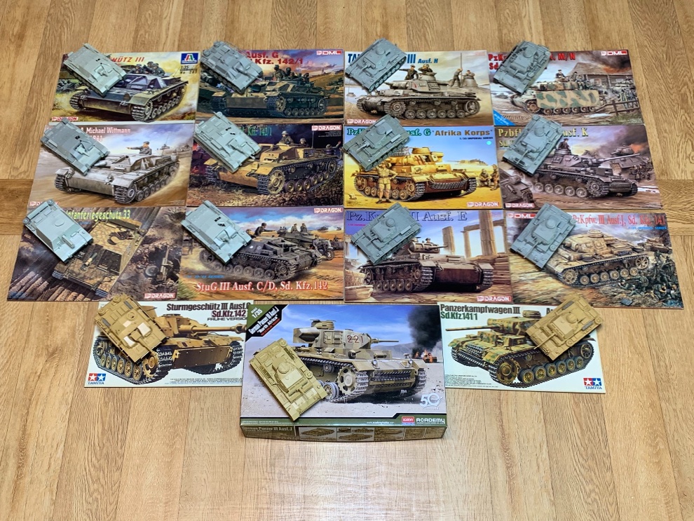 3호전차는 아카데미로 나온적이 없어서 사진처럼 외국산으로 채워야 했습니다. 4호전차와 타이거1은 일찌감치 나왔었고 판터나 킹타이거는 1/48 카세트 모터박스 시리즈로 만져볼 순 있었고 판터는 1/25도 나왔었죠. 그래서 신제품 소식 듣고 바로 사다 조립해봤더니 최신 키트답게 딱딱 맞는 손맛에 독특한 부품분할이 재미있더군요. 이제 드래곤 회색전차 물결에 타미야 추가요에서 아카데미 후속작들로 채워질 생각을 하니 속이 다 시원합니다.