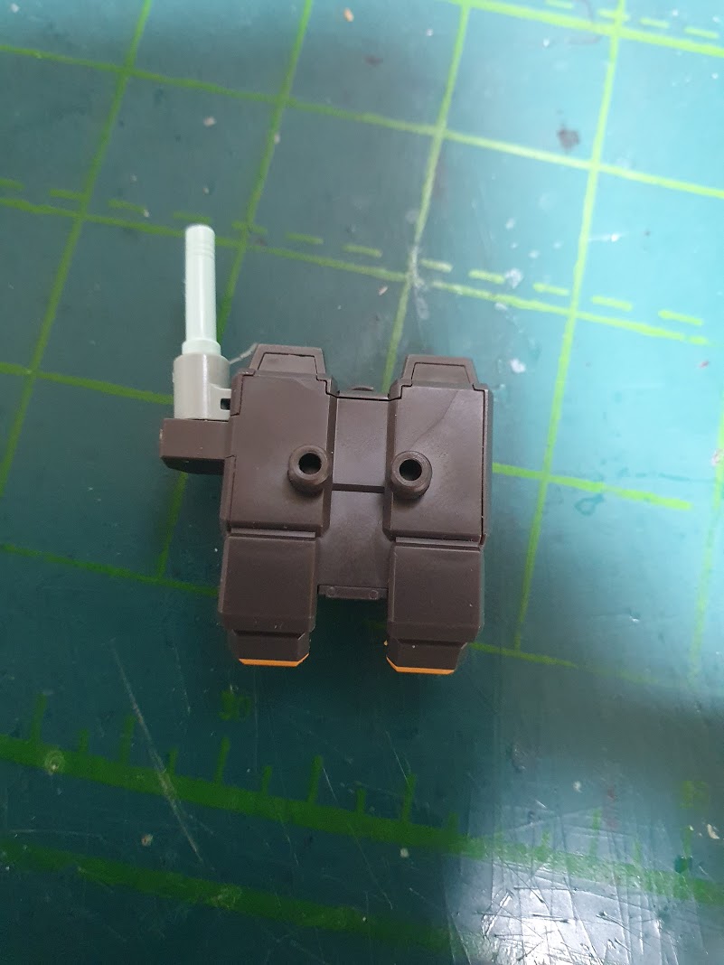 바로 이것 때문입니다. HGUC 슬레이브 레이스로, 육전형 건담의 커스터마이즈 기체라서 킷도 리뉴얼판 HGUC 육전형 건담에 색을 바꾼 다음 몇몇 부품을 추가해서 발매한, 평범한 한정판 건프라입니다. 하지만 리뉴얼한 육전형 건담은 구HGUC 육전형 건담의 백팩을 그대로 사용합니다. 그래서 구멍 지름이 똑같죠. 물론 이 점은 다른 백팩을 붙일 때는 매우 유용합니다만, 전 슬레이브 레이스에 HGUC 짐 스트라이커의 백팩을 붙이고 싶었으나, 핀의 위치는 맞는데 핀이 두껍습니다! 네. 무개조로 끼울 방법이 없는 겁니다!