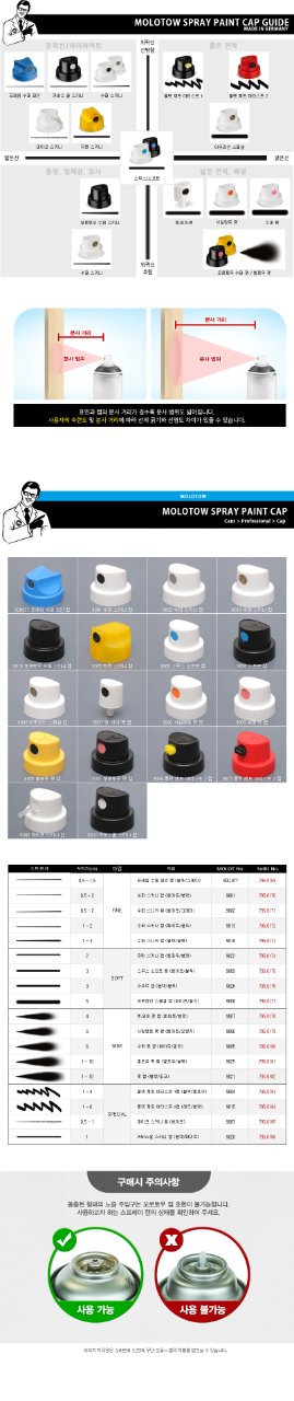 제가 산 건 총 3종류의 스프레이 캡인데, 당연히 모형용이니 가늘게 나오는 걸로 샀습니다. 위 도표에서 정 중앙에 있는거, 그보다 세밀하게 나오는 왼쪽 위의 노란색, 그리고 가장 세밀하고 작게 나오는 가장 왼쪽위의 파란색 스프레이 캡으로 3종류 입니다. 그런데 정중앙의 하얀색 캡은 여러분도 들어보셨을 넓게 퍼지는 스프레이캡과 거의 비슷한 성능이더군요. 가습기처럼 자욱하고 넓게 퍼져서 나옵니다. 가장 얇고 좁게 나오는 파란색 캡이어야 겨우 에어브러쉬 비슷한 출력이 나오더군요.