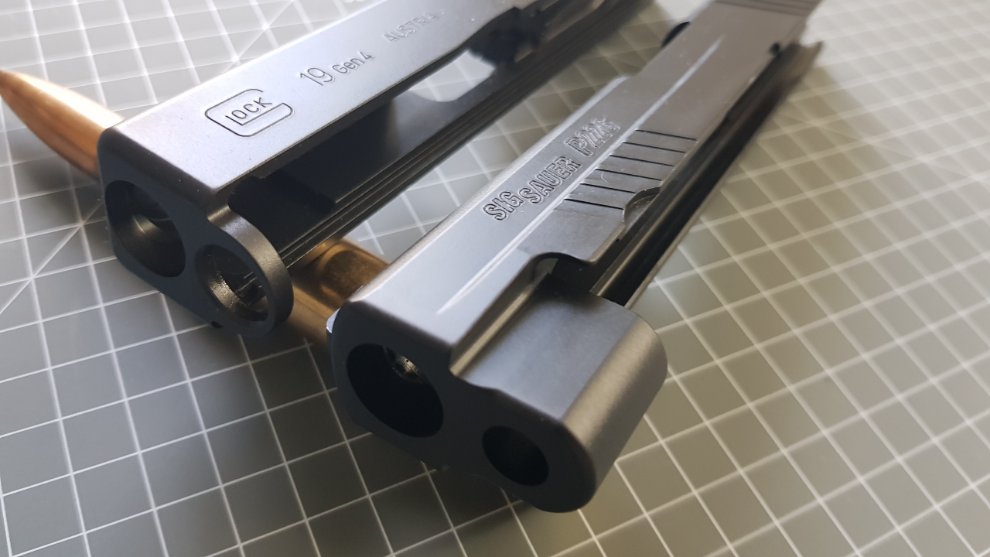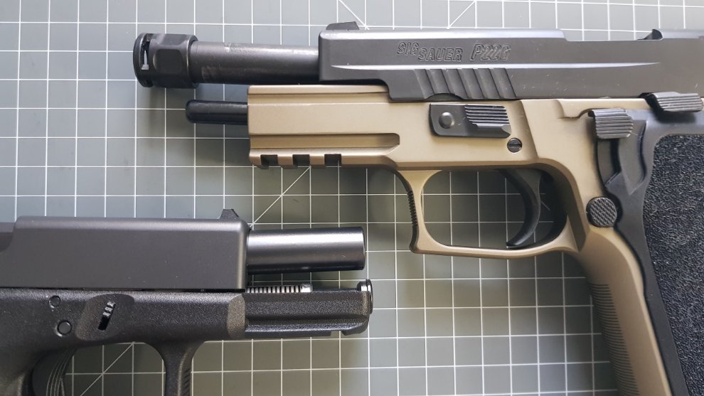 두총의 슬라이드 비교입니다. 비전문가인 제가 봐도Sig 슬라이드 공정원가가 비싸 보입니다. 그런데 로고와 각인은 glock이 멋있네요.
