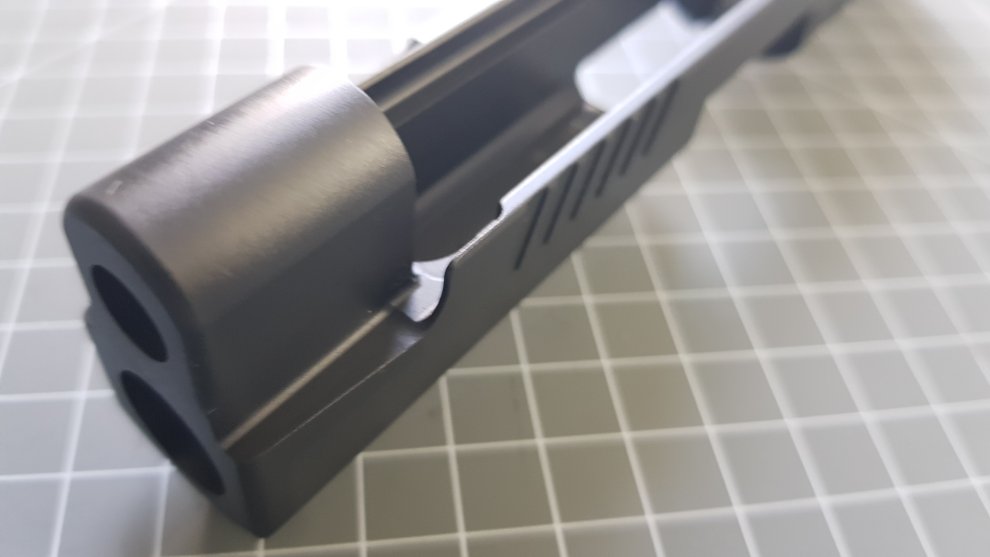 총구쪽 슬라이드와 물리는 부분은 상당히 얇습니다.