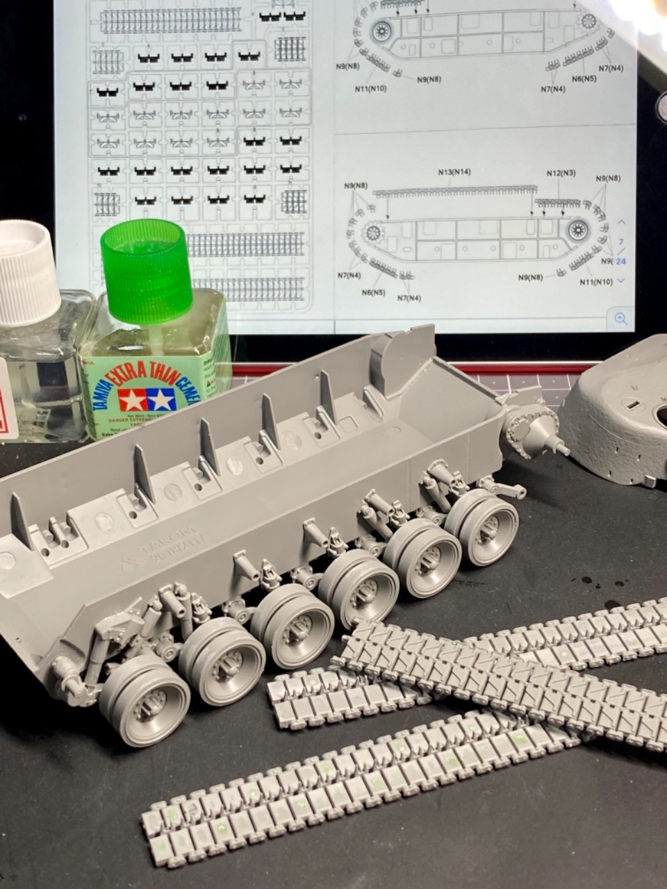 궤도를 조립할 차례인데 로드휠과 궤도를 어떻게 탈착 가능하게 할지 고민이 좀 됩니다.