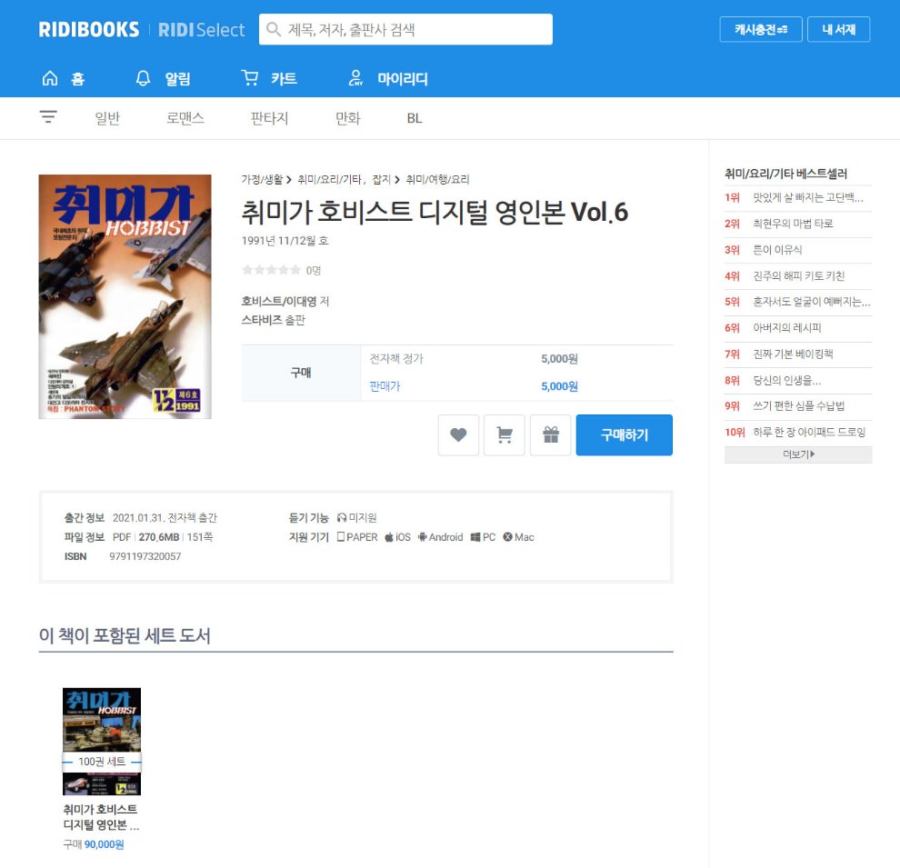완판 후 지속적으로 추가 구입을 문의하시거나 해외에서 구입을 문의하시는 분들이 더러 있었으나 한정된 물량이 소진된 탓에 이를 해결해드리지 못하였습니다. 온라인 서점을 통해서 보다 많은 국내외 모형동호인들이 쉽게 접근하실 수 있도록 e-Book 버전을 새로이 준비하였습니다. 이번 e-Book 버전의 제작에는 기존 파인빌드스튜디오와 더불어 새로이 합류하게 된 스타비즈가 수고하여 주셨습니다. 국내 대표적인 온라인 서점(교보/예스24/알라딘/리디북스/인터파크/네이버)에서 공개하는 e-Book 버전의 취미가는 이전 USB 버전 대비 향상된 화질과 개선된 편집 방식을 거쳐 더 높은 해상도와 편의성을 갖추었습니다. 이로써 취미가 원본의 감동에 보다 근접하려 노력하였습니다.