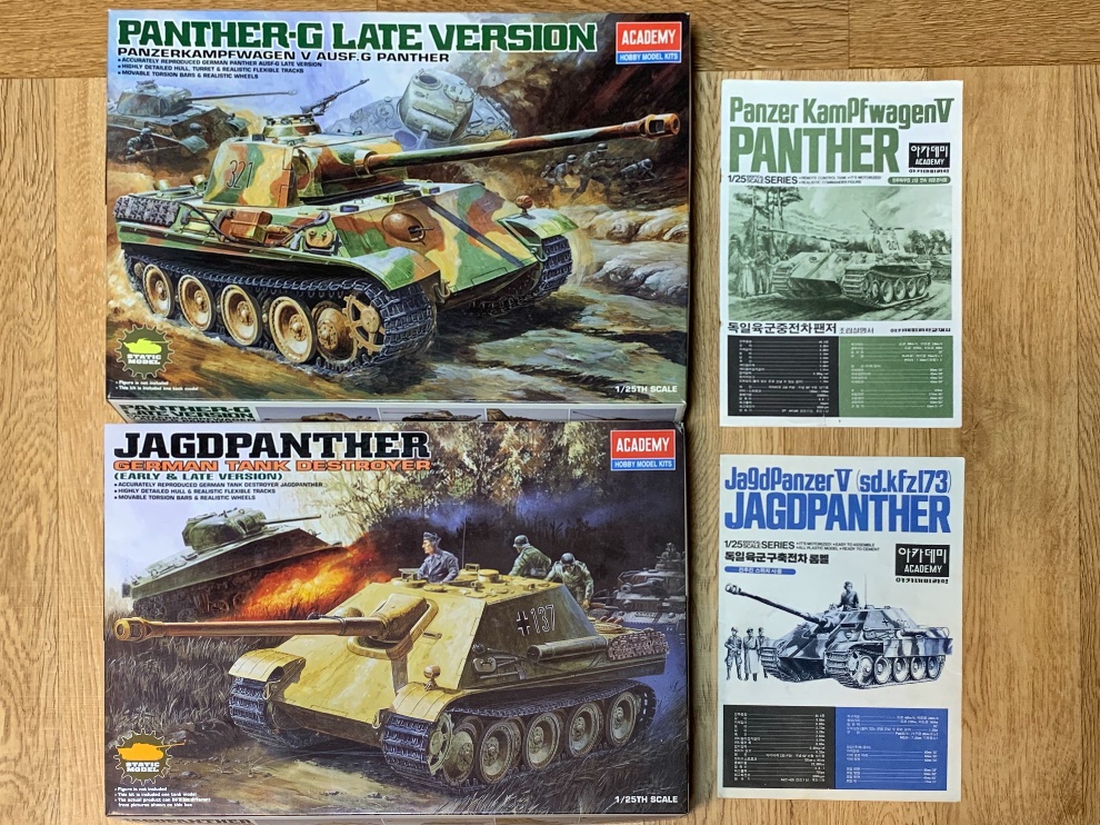 세월은 흘러 2003년 아카데미에선 1/25 판터를 차체 하부만 빼고 싹 신금형으로 G형을 내놓았습니다. 런너를 보면 야크트판터용 부품도 있어서 같이 내놓을 것 같았는데 판매량이 별로였는지 새 야크트판터는 새 부품마저 그냥 버리고 포방패 주변만 다른 정도로만 나오더군요. 궤도는 연질 일체형에 이미 1/35도 본격 회치기가 시작되는 시점에서 덩치만 큰 키트에 불과했나봅니다. 지금은 아카데미 홈페이지에도 없네요.