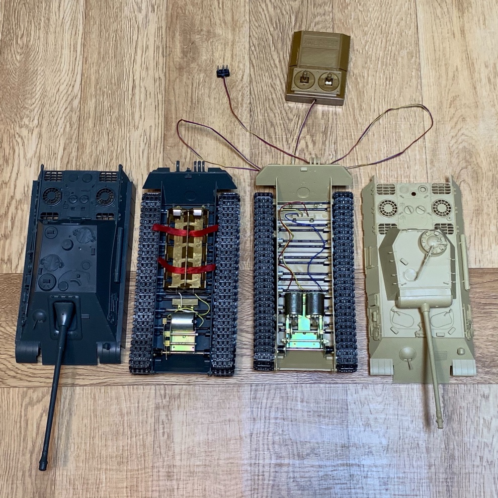 스위치 전후진용과 리모콘 전후좌우진 롬멜과 팬저 내부입니다.